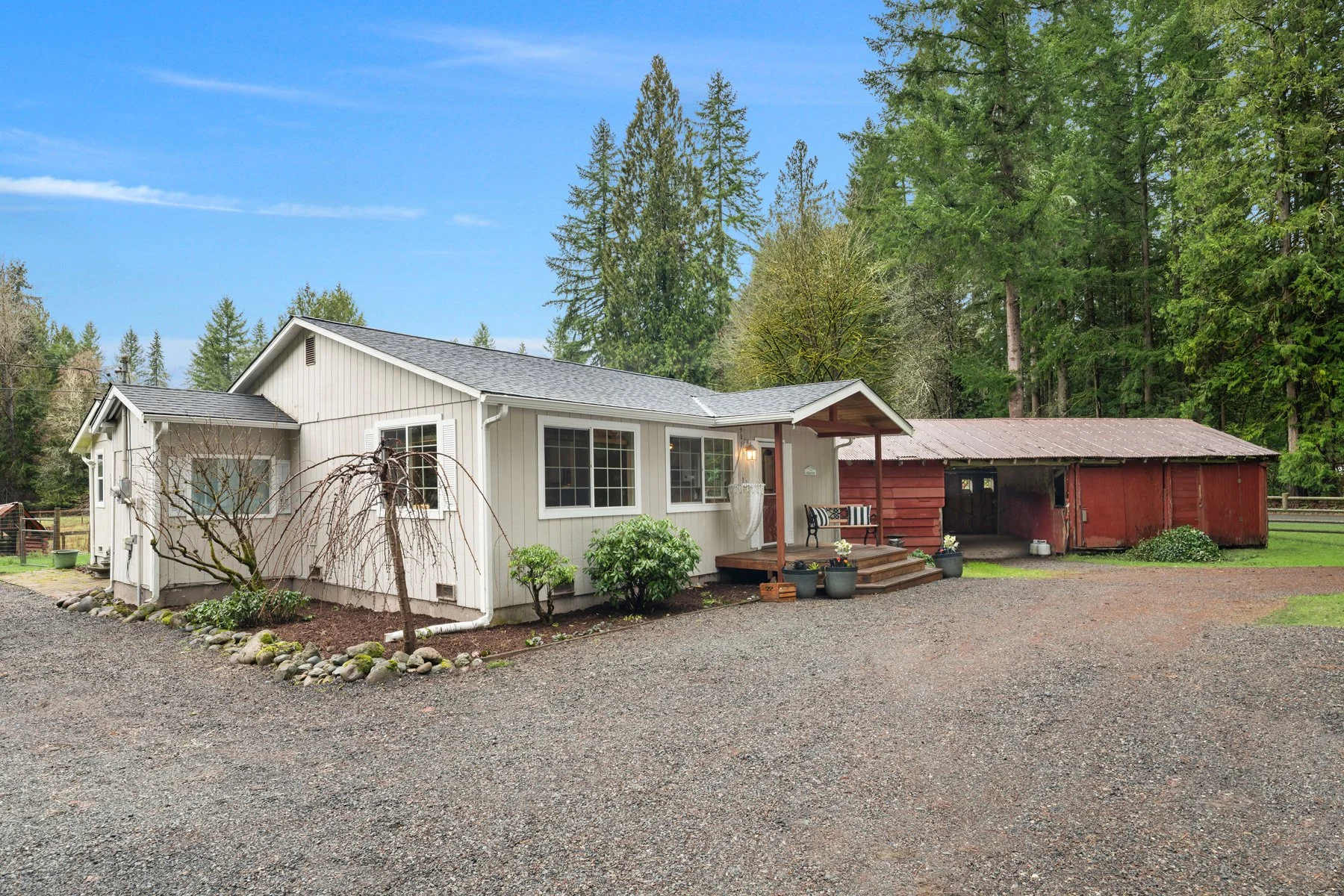 Welcome to Happy Hollow Farm! Charming country retreat on 5.15± acres, ideally located minutes from Downtown Duvall and Carnation. This special property offers a rare opportunity to enjoy refined rural living with the flexibility to create your own mini farm or equestrian haven. One-level rambler features 3 bedrooms, 2 baths, an office/flex space, and 1,460± sq ft of comfortable living space. The 2014 addition to the original home added expanded living space, enhancing the home’s layout and comfort while maintaining its country charm.